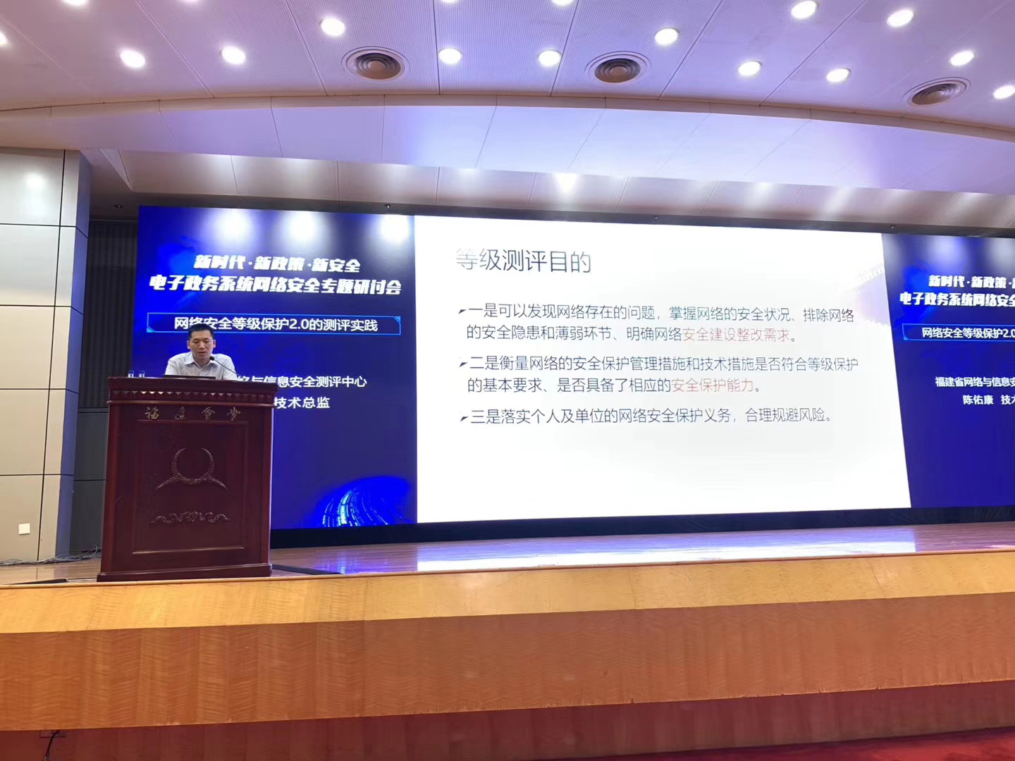 本次大会邀请了公安部信息安全等级保护评估中心马力副研究员做“网络安全等级保护2.0主要标准介绍“的主旨演讲,介绍分析网络安全等级保护2.0标准体系、框架和内容,讲解了新特点、新变化;省密码管理局技术专家分享了“构建以密码为基石的网络安全体系”的技术专题报告,宣传国家密码管理政策要求,解读《福建省密码应用与创新发展实施方案(2019-2022年)》,推动商用密码产品在电子政务系统的应用。